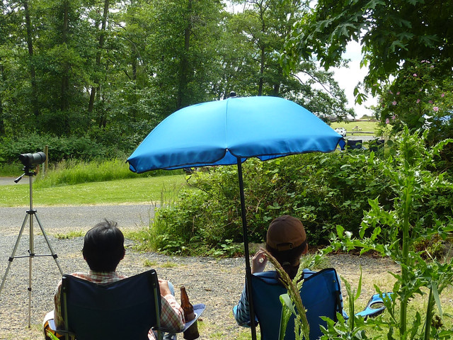 傍晚時分,沒什麼遊客,公園略顯冷清,而且海邊風大,吹得一家人直打哆嗦,停留了一會兒便打道回府,迫不及待的想回去烤肉了呢!嗯,媽媽醃的雞腿及豬排實在太美味了,大家都吃得相當過癮。這時下方有人高喊「有orca」,原來遠方海面上出現鯨魚的尾巴,爸爸及女兒帶著高倍數望遠鏡跟著眾多露營客直奔下方海邊觀賞鯨魚,哇,真是運氣不錯!