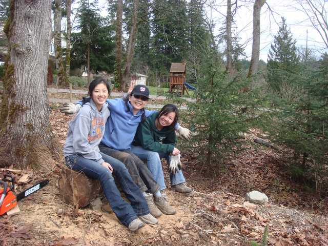 兩個女兒除了每天上學把自己的功課及份內的事做好,假日三不五時也得參與房子的建設。說實話,這年頭找不到這麼貼心又肯吃苦耐勞的青少女了!不是只有媽媽這麼說哦,咱們鄰居及包商們也對這兩個孩子讚不絶口,鄰居說:「她們不只幫忙,而且是”笑著幫忙”哦!」上週末一家人又協力種下約200棵樹,還在濕地內開闢步道,以後在咱家院子散步,不只有獨木橋可以走,還有大木頭椅子可以坐著乘涼,還可以看老鷹悠閒的遨翔,好似身在國家公園內,真是太酷了!